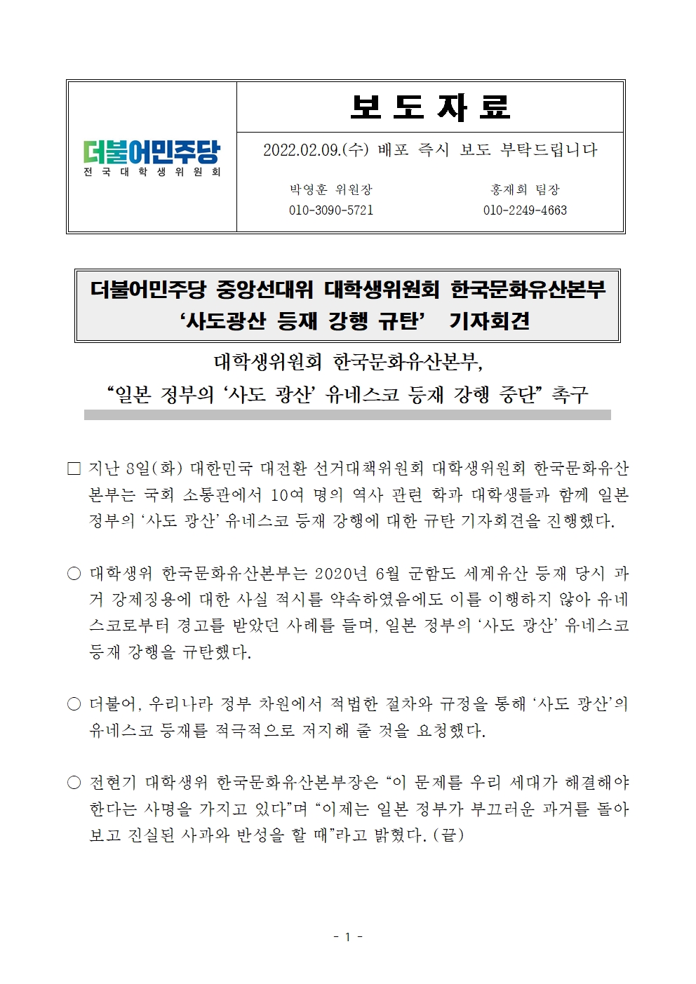 220209_선대위_대학생위원회_한국문화유산본부_8일_사도광산_등재_규탄_기자회견_보도자료.pdf