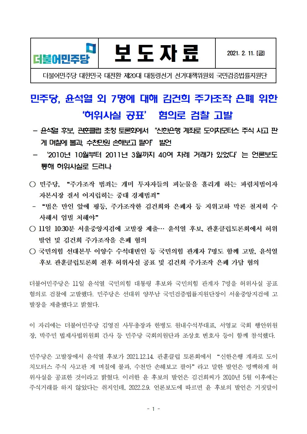 220211_보도자료_민주당,_윤석열_및_국힘_관계자_7명_허위사실_공표_혐의_고발.pdf