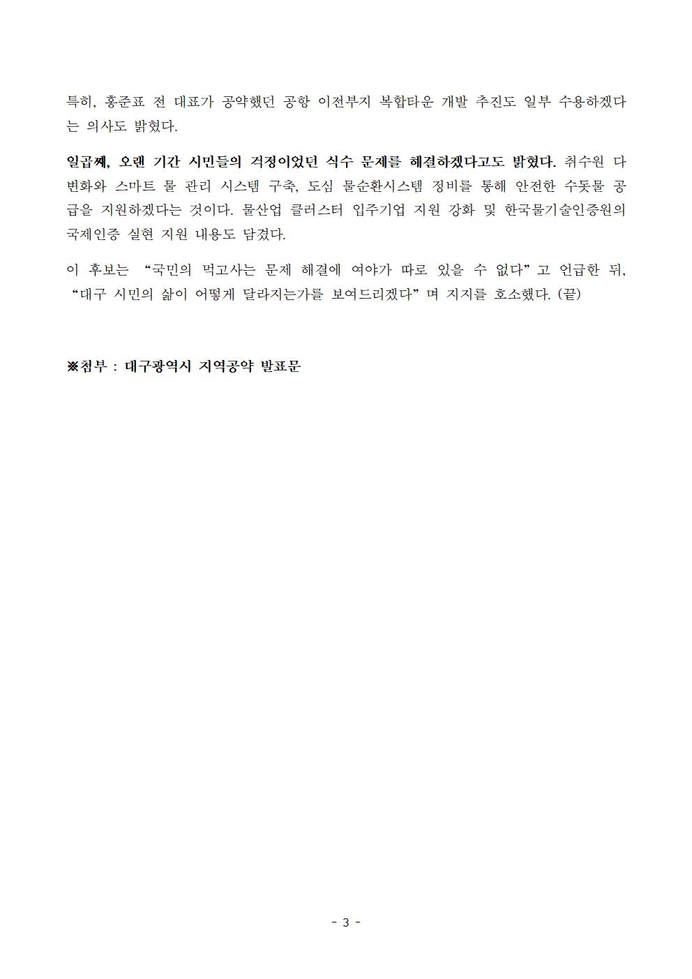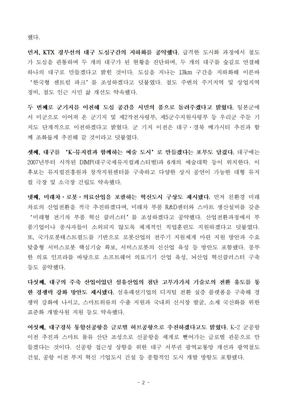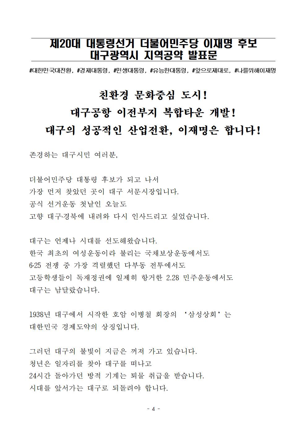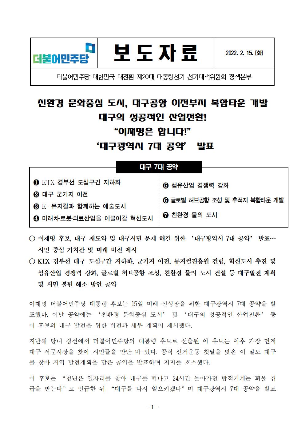 [보도자료] 더불어민주당 선대위 정책본부 대구지역 공약발표