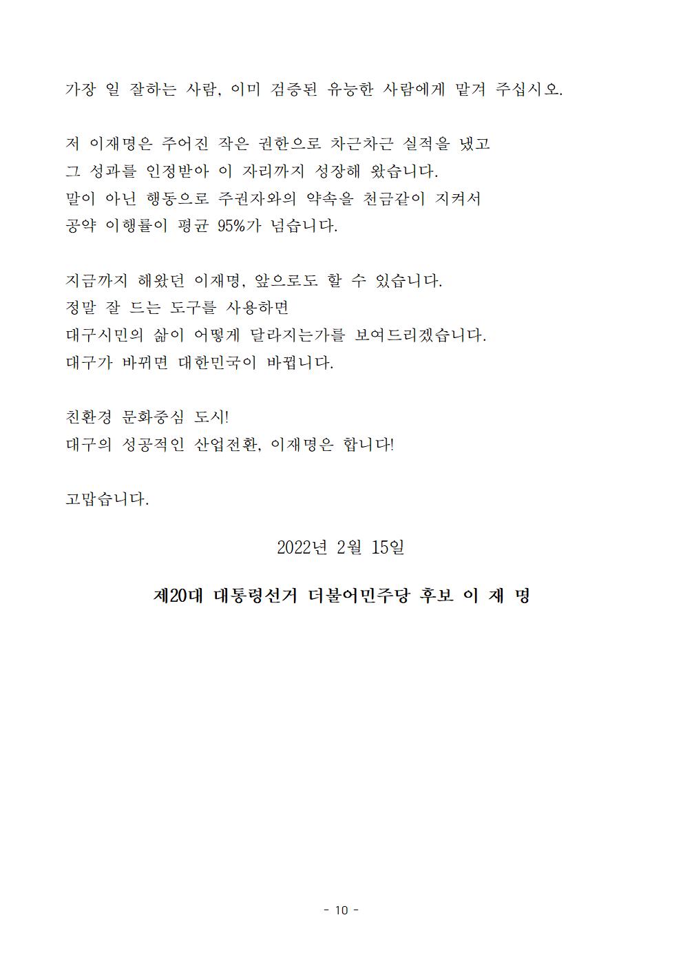 [보도자료] “이재명을 싫어하는 분들께” 드리는 이재명 후보의 간절한 호소 - 김영희C센터 TV 광고 제1탄 “편지” 편 공개