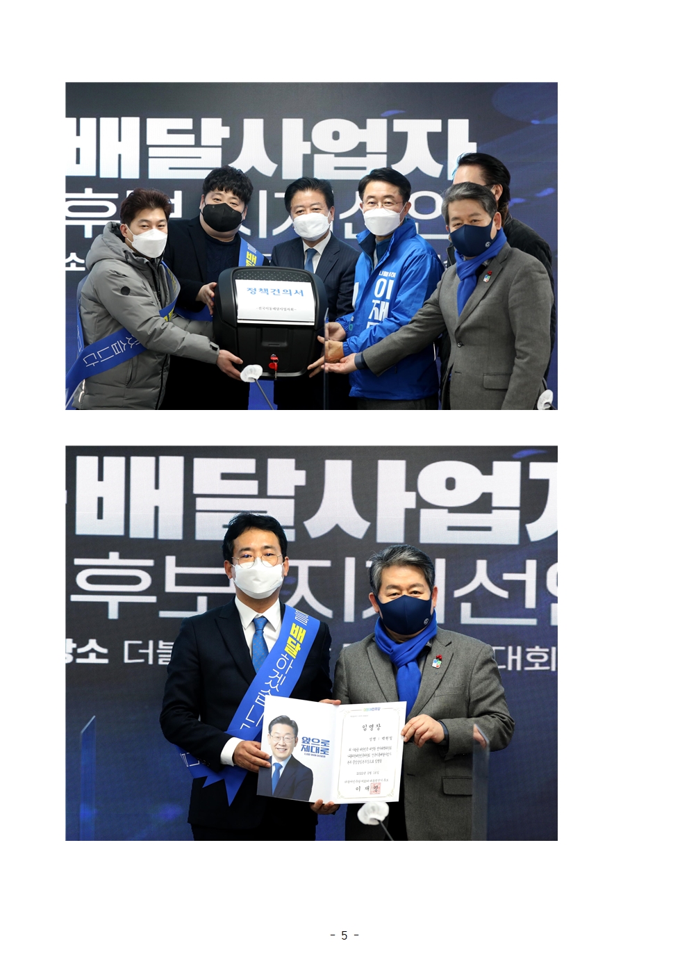 [보도자료] 더불어민주당 선대위 나를위한정책위원회, 이동배달 사업자 700명 후보 지지선언