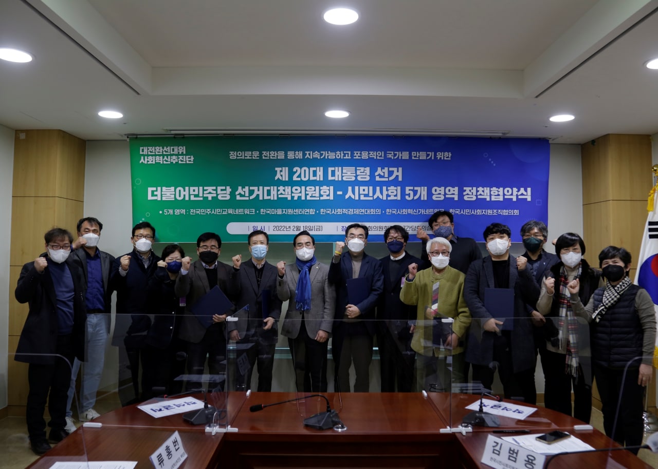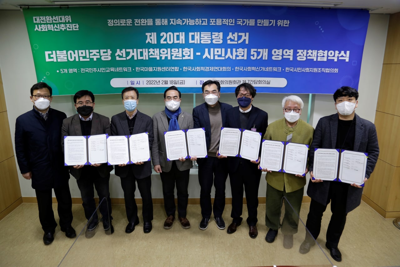 [보도자료] 더불어민주당 선대위 사회혁신추진단, 시민사회 5개 영역 대표단과 정책협약 체결