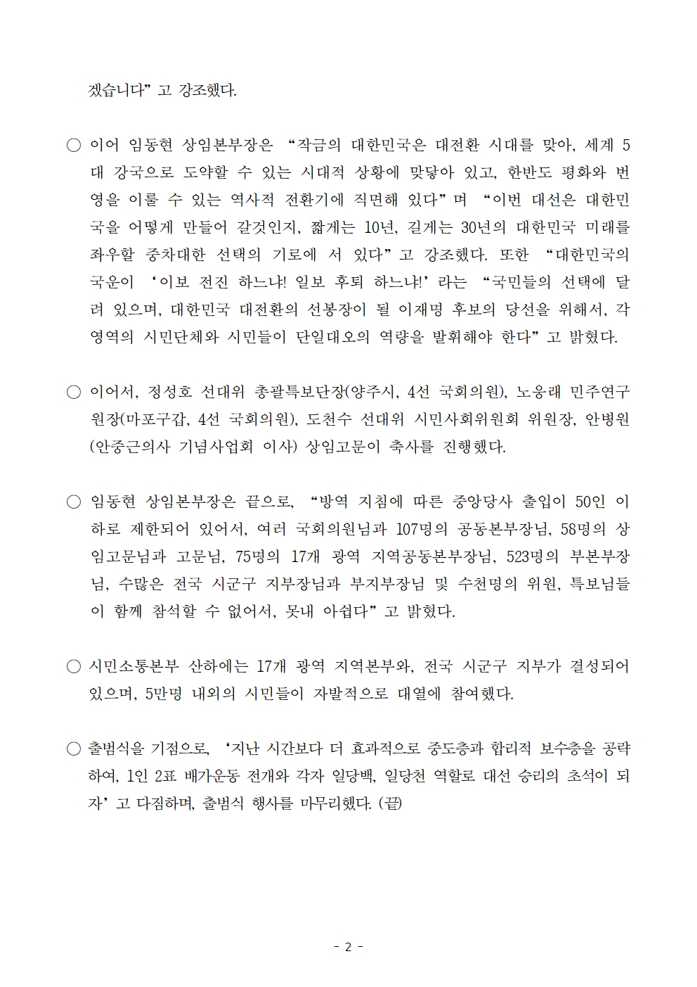 [보도자료] 더불어민주당 선대위 시민사회위원회, '시민소통본부' 출범 및 시민단체 5만여 명 지지선언