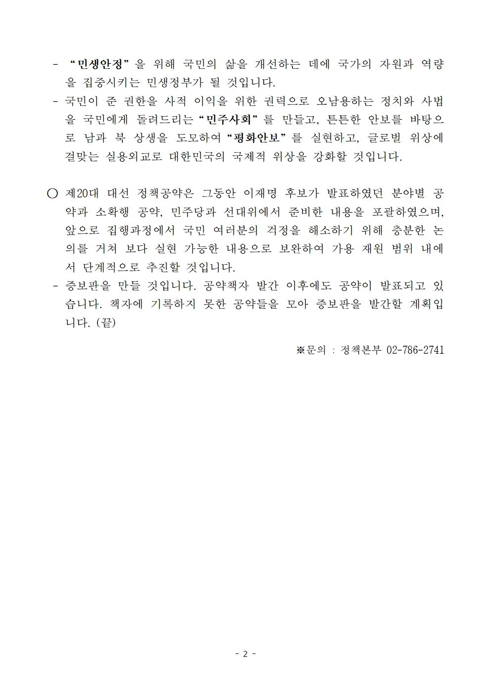 [보도자료] 더불어민주당 선대위 정책본부, 제20대 대통령선거 정책공약집 '앞으로 제대로 나를 위한 맞춤공약' 5대 비전, 20대 핵심과제, 272개 실천과제 발표