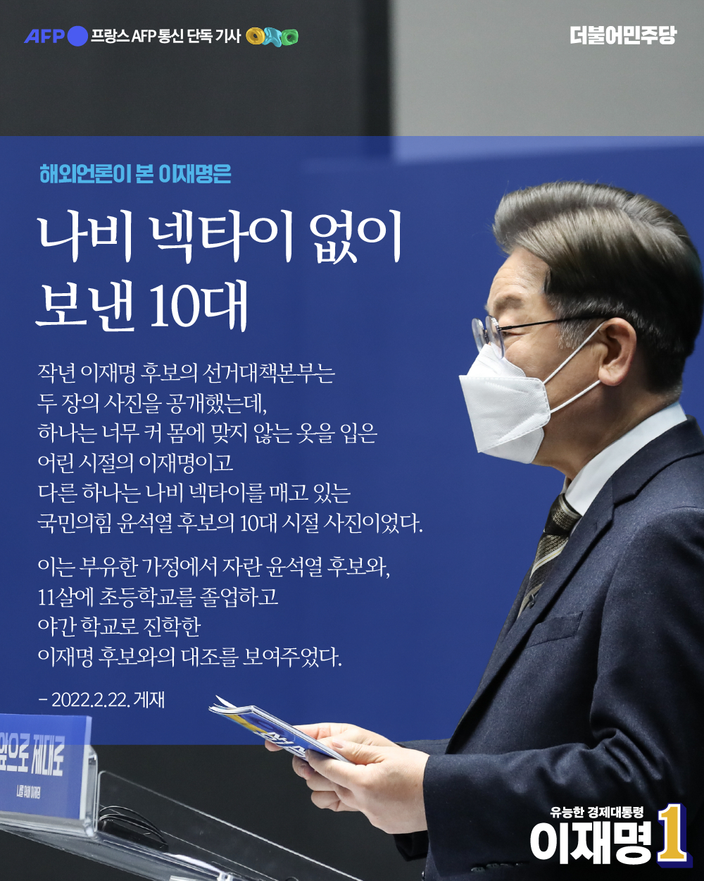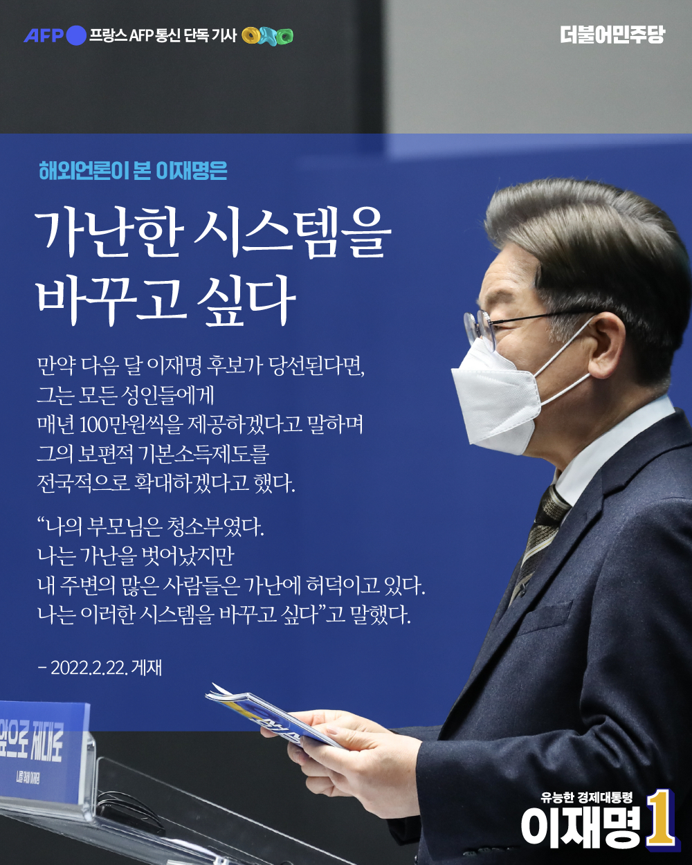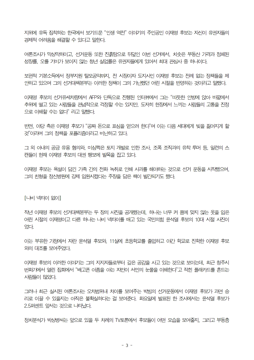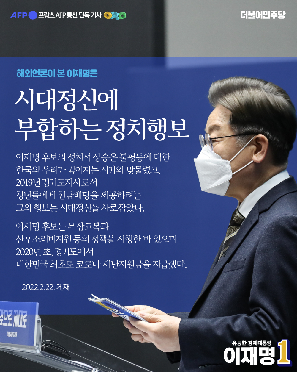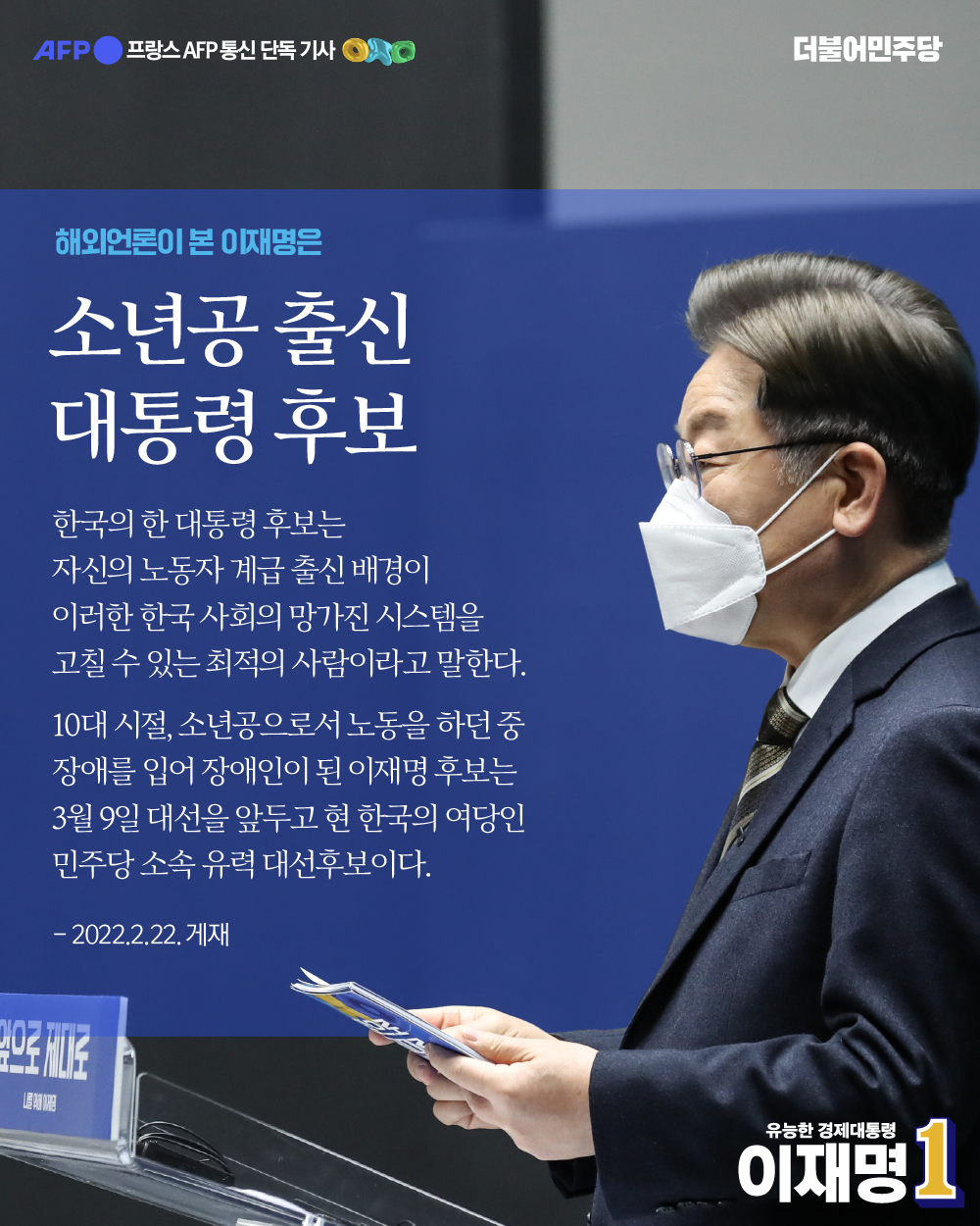 [보도자료] 더불어민주당 선대위 공보단, AFP, 이재명 '한국사회 불평등 개선할 유능한 경제 대통령' 가능성 주목