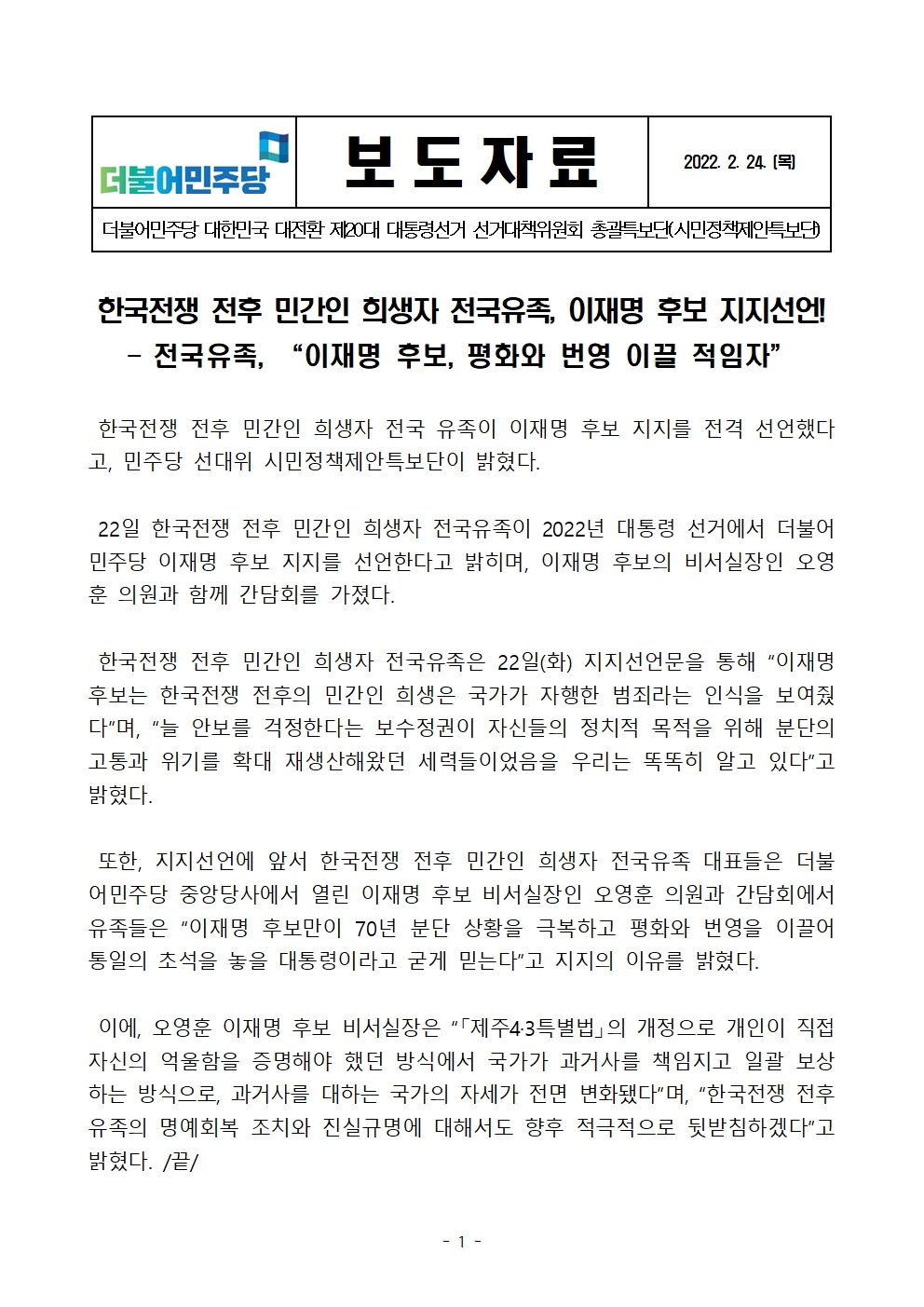 220224_특보단_한국전쟁_전후_민간인_희생자_전국유족,_이재명_후보_지지선언.pdf
