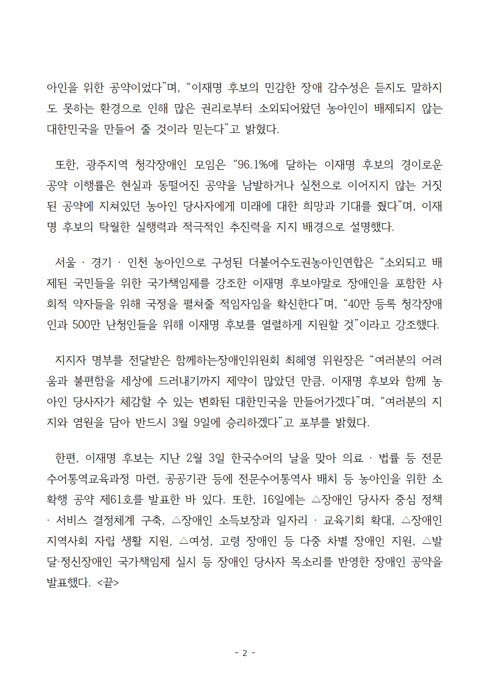 [보도자료] 더불어민주당 선대위 함께하는장애인위원회, 농아인 1,600여 명 후보 지지선언
