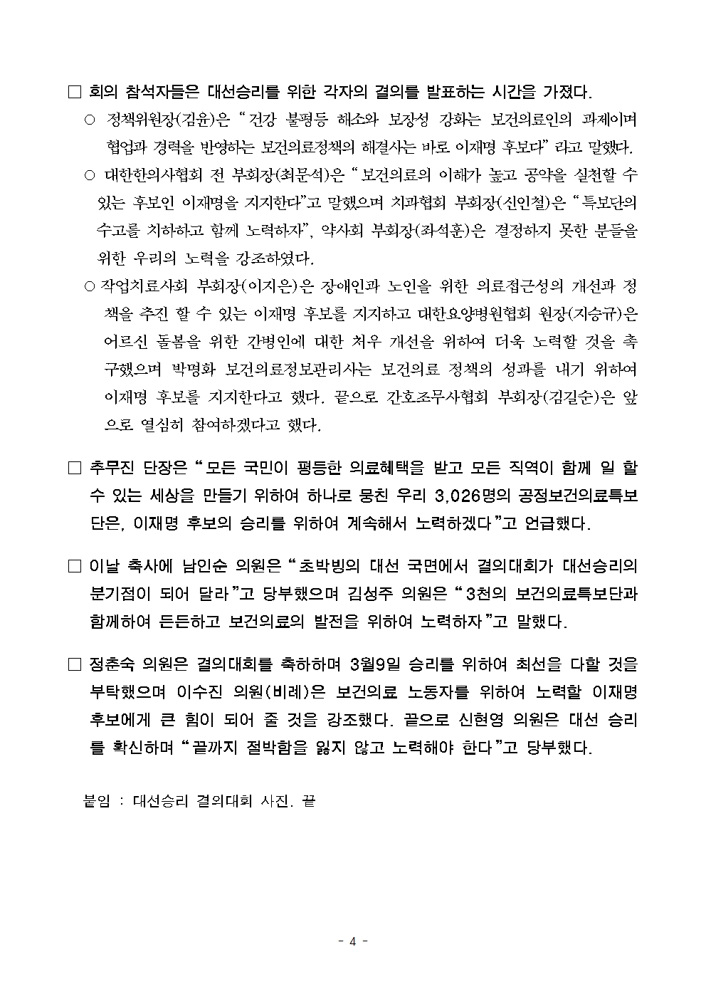 [보도자료] 더불어민주당 선대위 총괄특보단, 문화업계 종사자 후보 지지선언 및 공정보건의료특보단 결의대회 개최