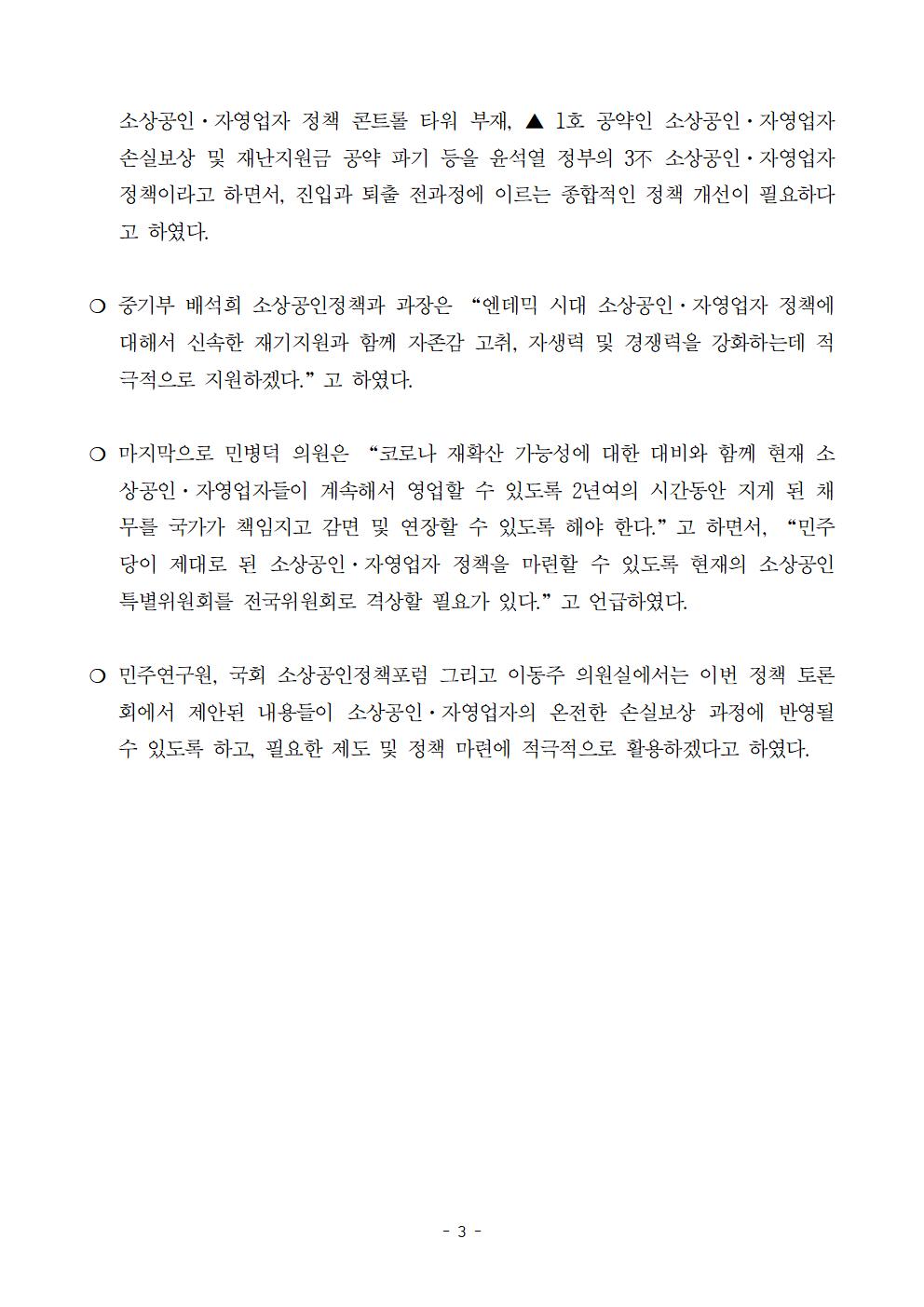 [보도자료] 더불어민주당 민주연구원, 코로나19 손실보상 제도개선 방안 정책토론회 개최