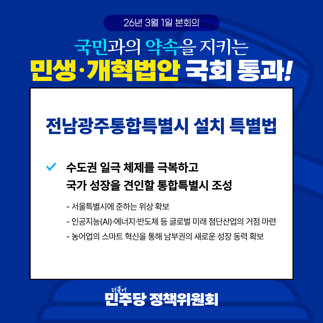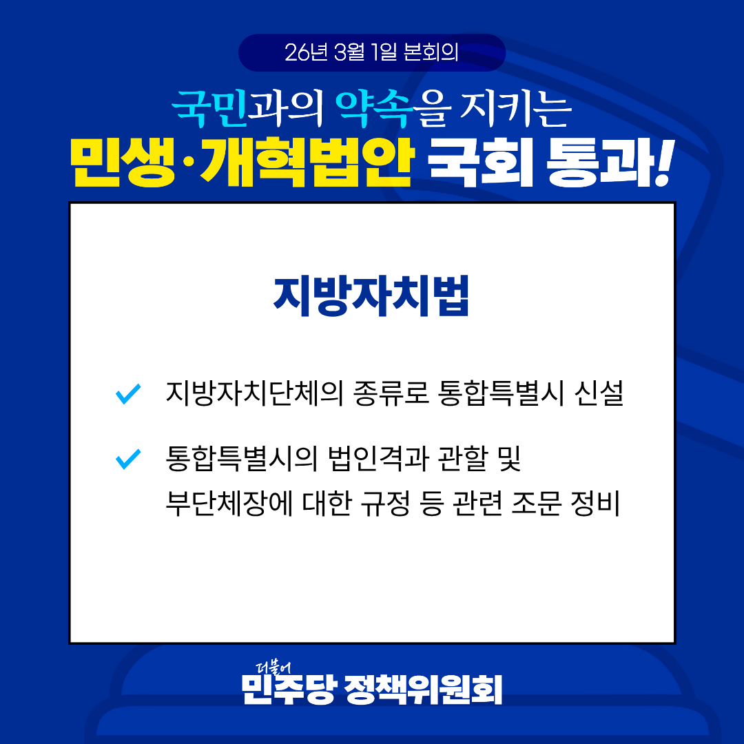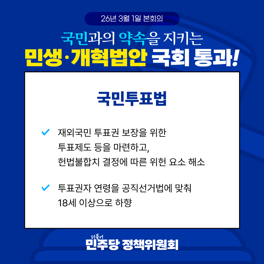 국민과의 약속을 지키는 민생·개혁법안 국회 통과! <26.03.01 본회의>