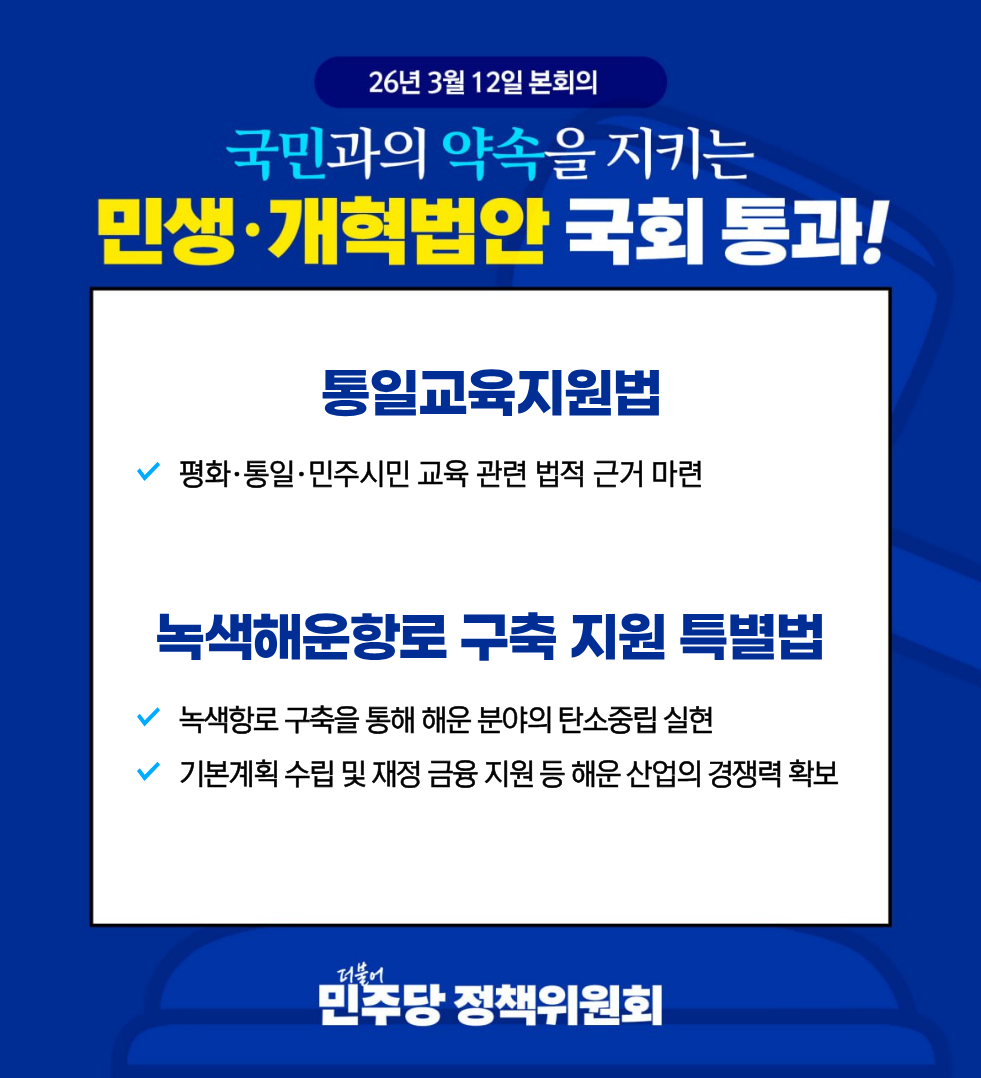 국민과의 약속을 지키는 민생·개혁법안 국회 통과!<26.03.12 본회의>