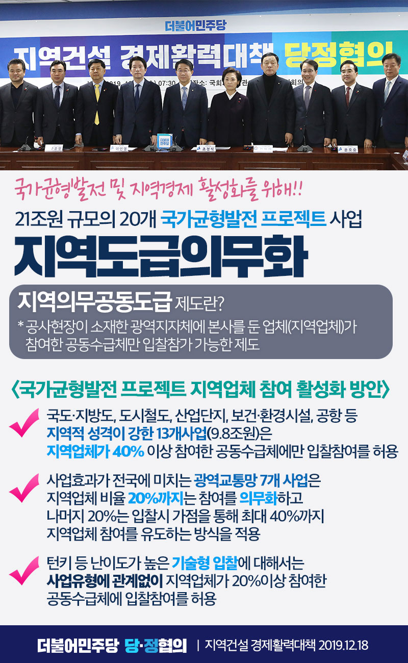 국가균형발전 및 지역경제 활성화를 위해! 지역도급의무화