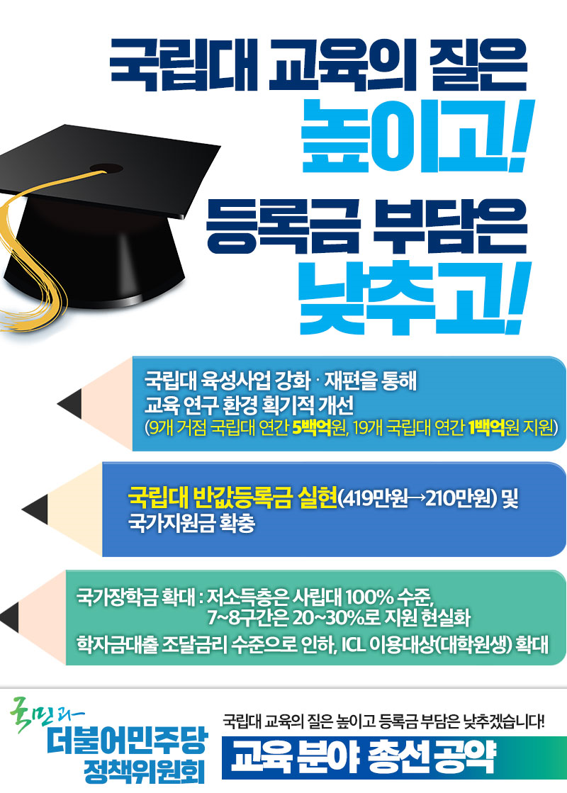 [총선 공약] "국립대 교육의 질은 높이고 등록금 부담은 낮추겠습니다!" - 교육 분야