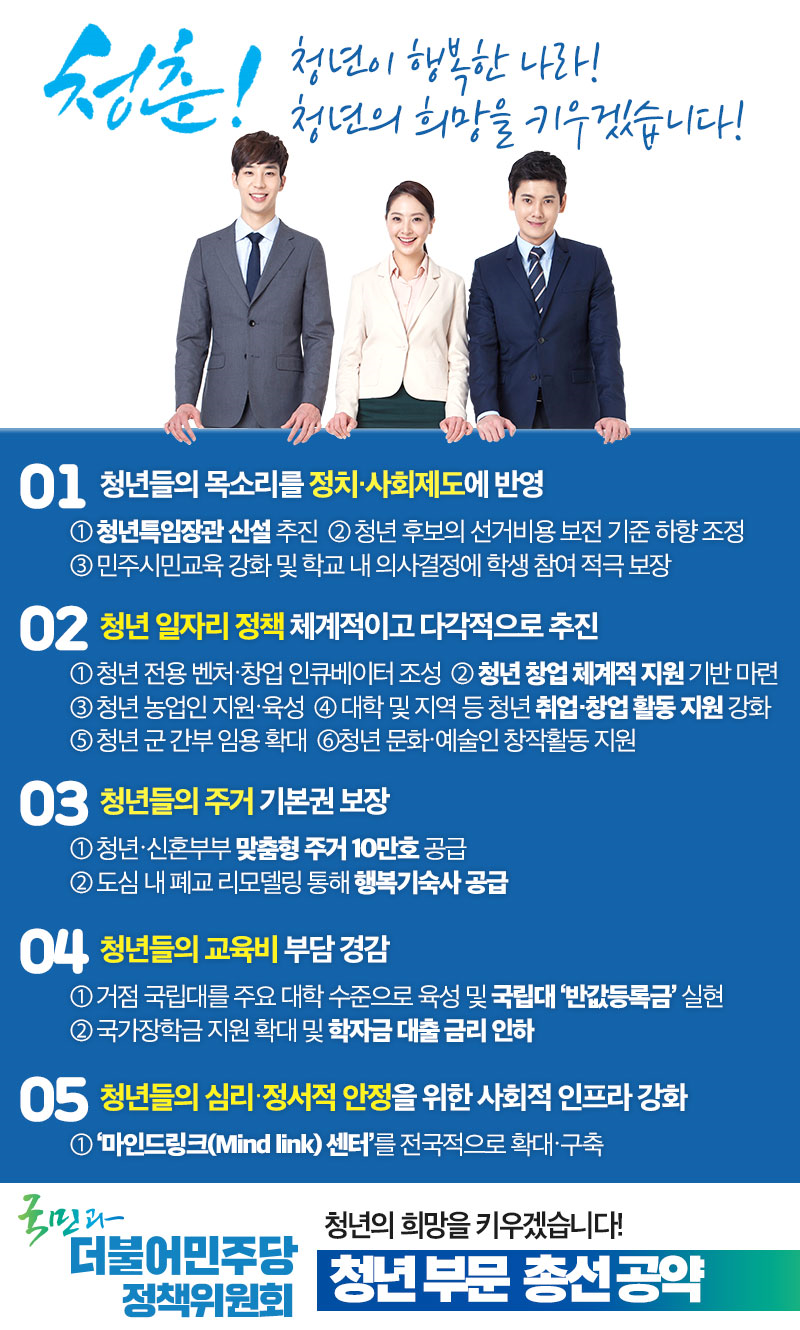 [총선 공약] "청년이 행복한 나라! 청년의 희망을 키우겠습니다!"
