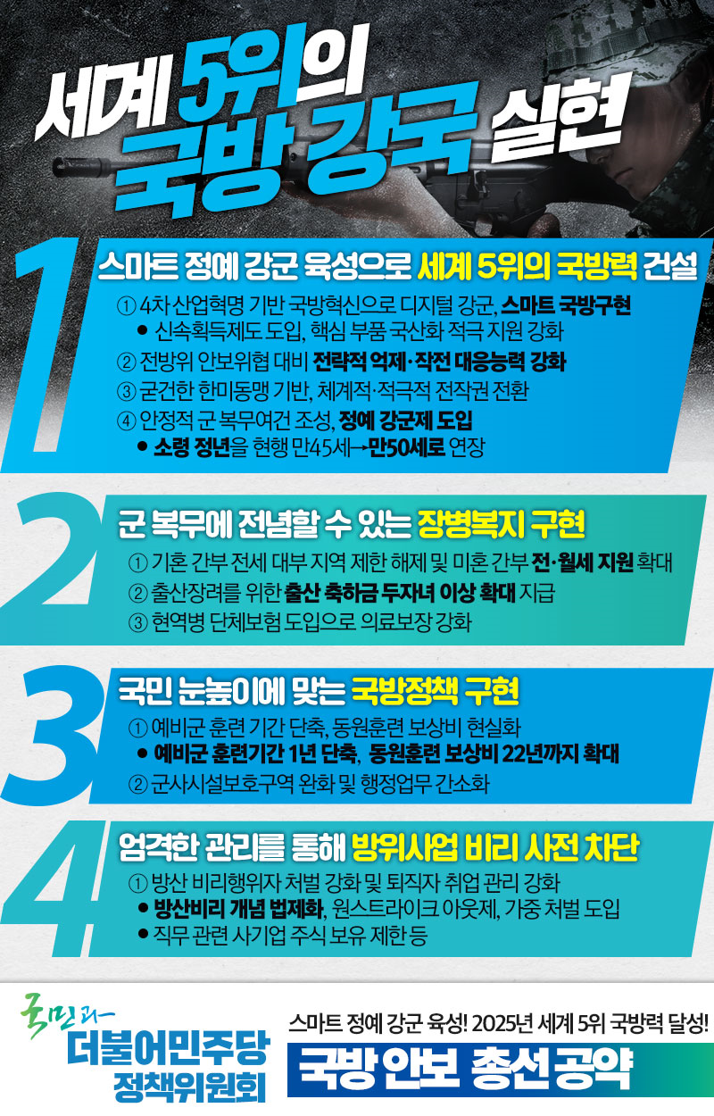 [총선 공약- 국방] 스마트 정예 강군 육성! 세계 5위의 국방 강국을 실현하겠습니다!
