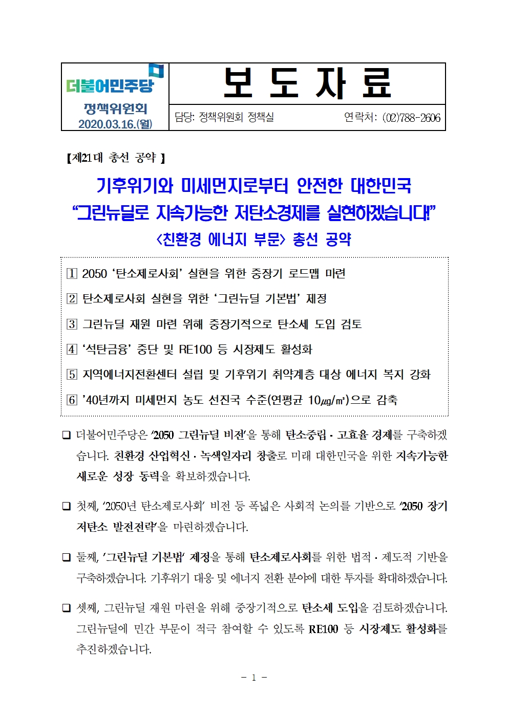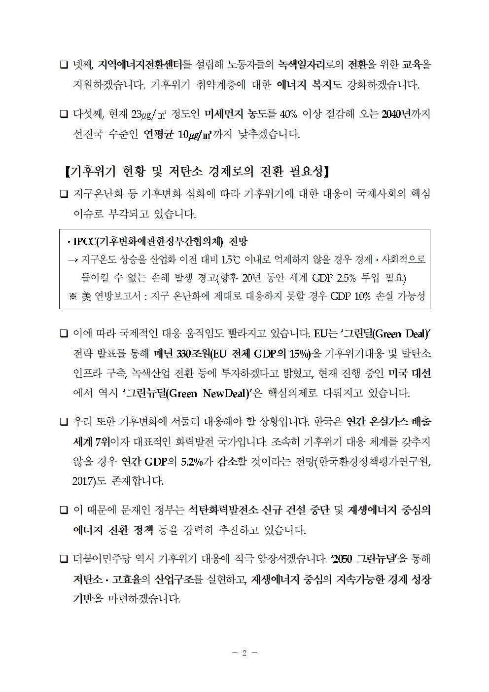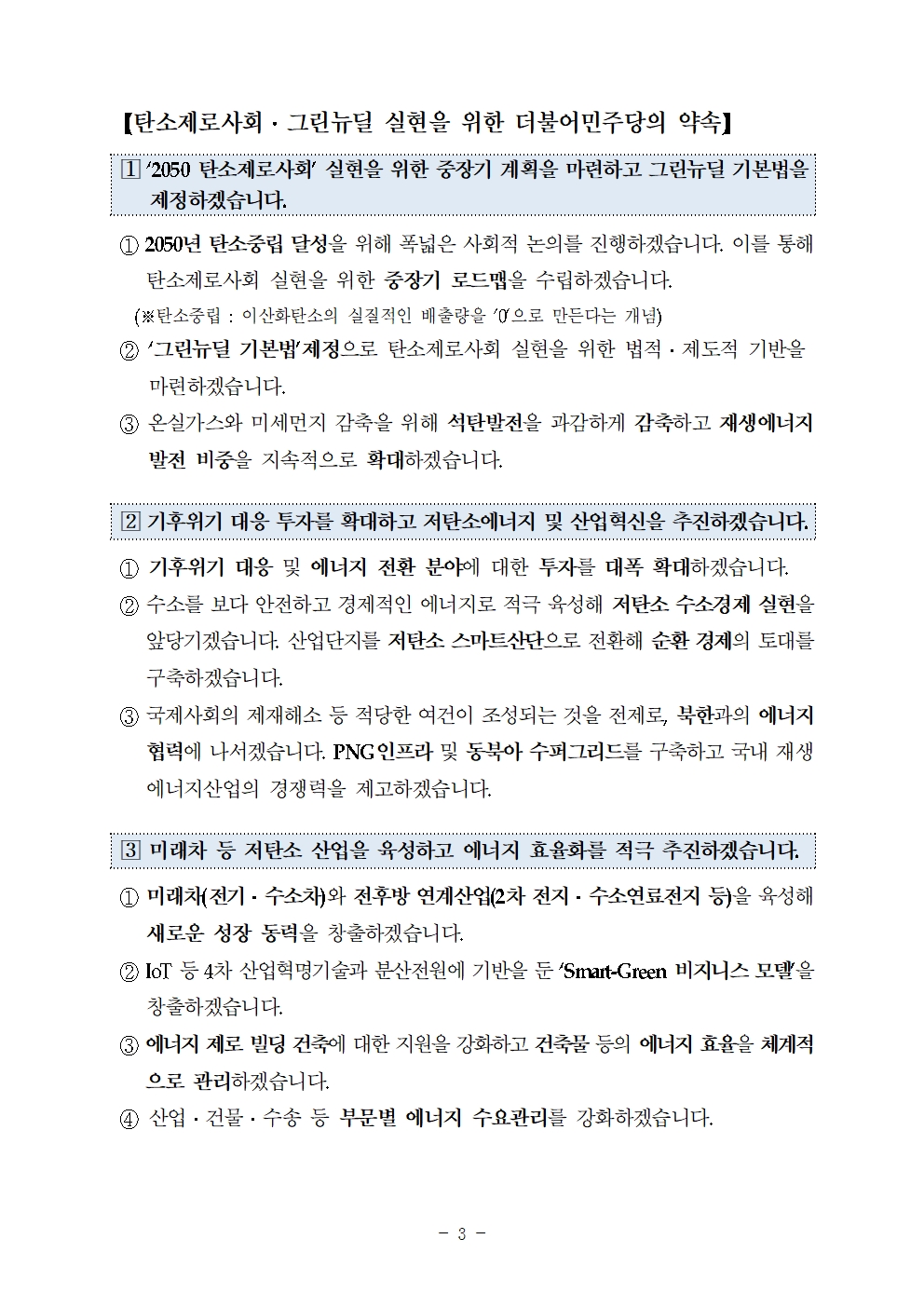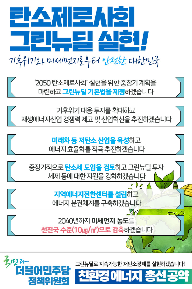 [총선 공약-친환경 에너지 부문] 그린뉴딜로 지속가능한 저탄소경제를 실현하겠습니다!