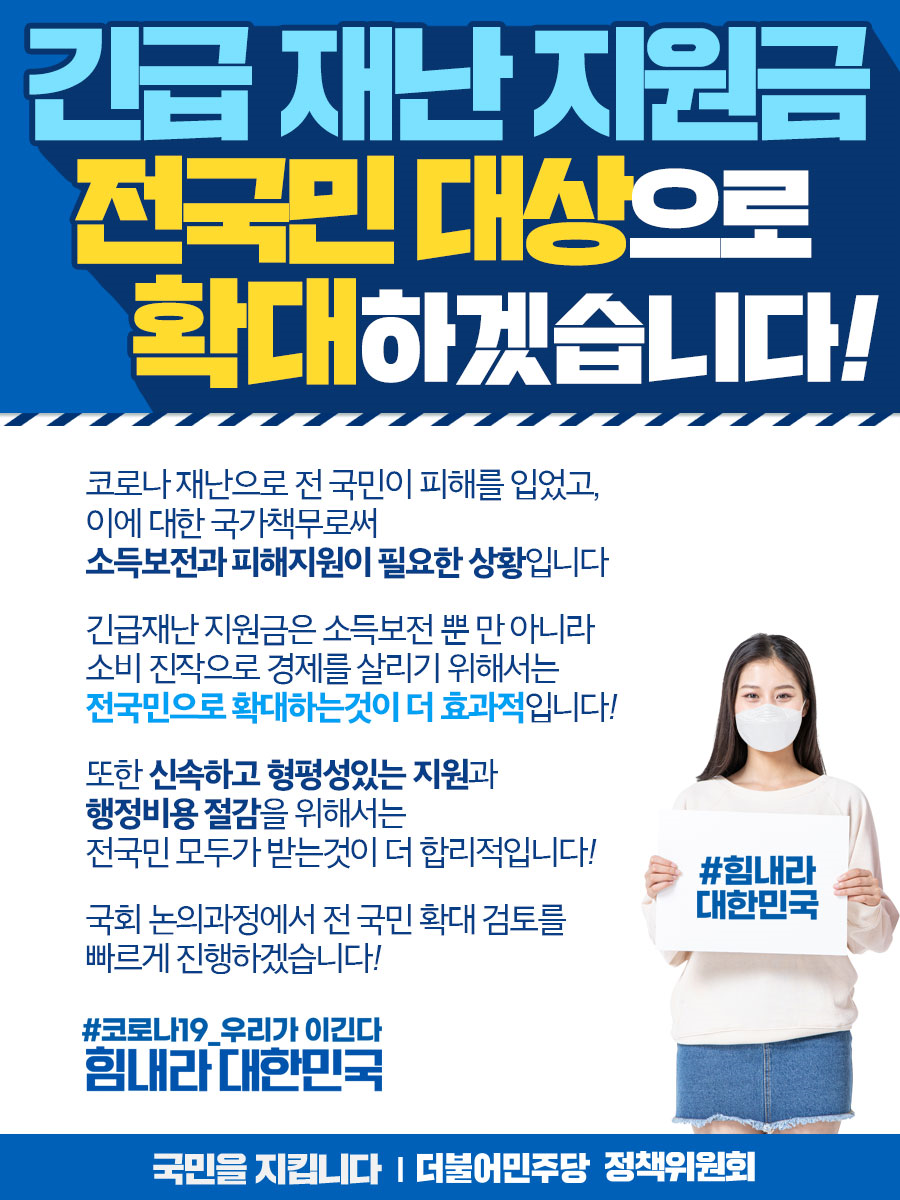 긴급 재난 지원금, 전국민 대상으로 확대하겠습니다!