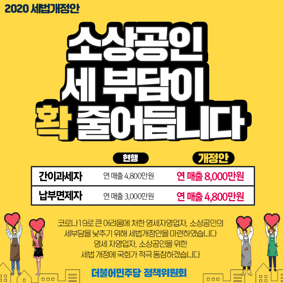 2020 세법개정안 : 소상공인 세 부담이 확 줄어듭니다!