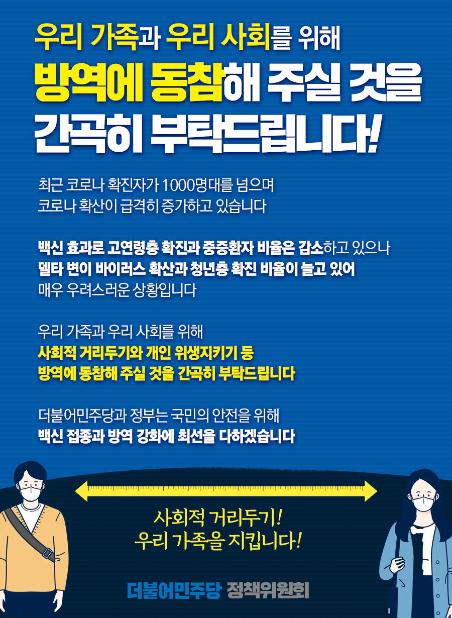 우리 가족과 우리 사회를 위해 방역에 동참해 주실 것을 간곡히 부탁드립니다!
