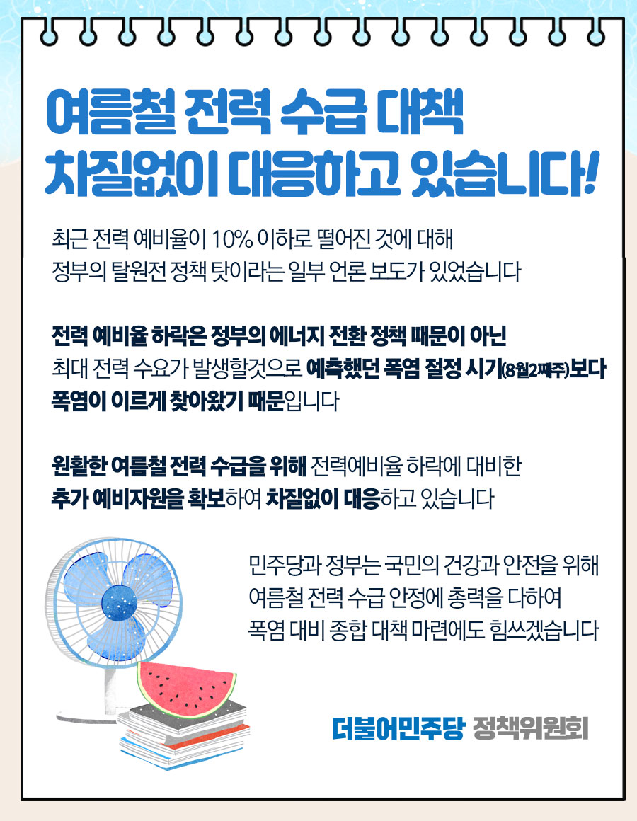 여름철 전력 수급 대책 차질없이 대응하고 있습니다!