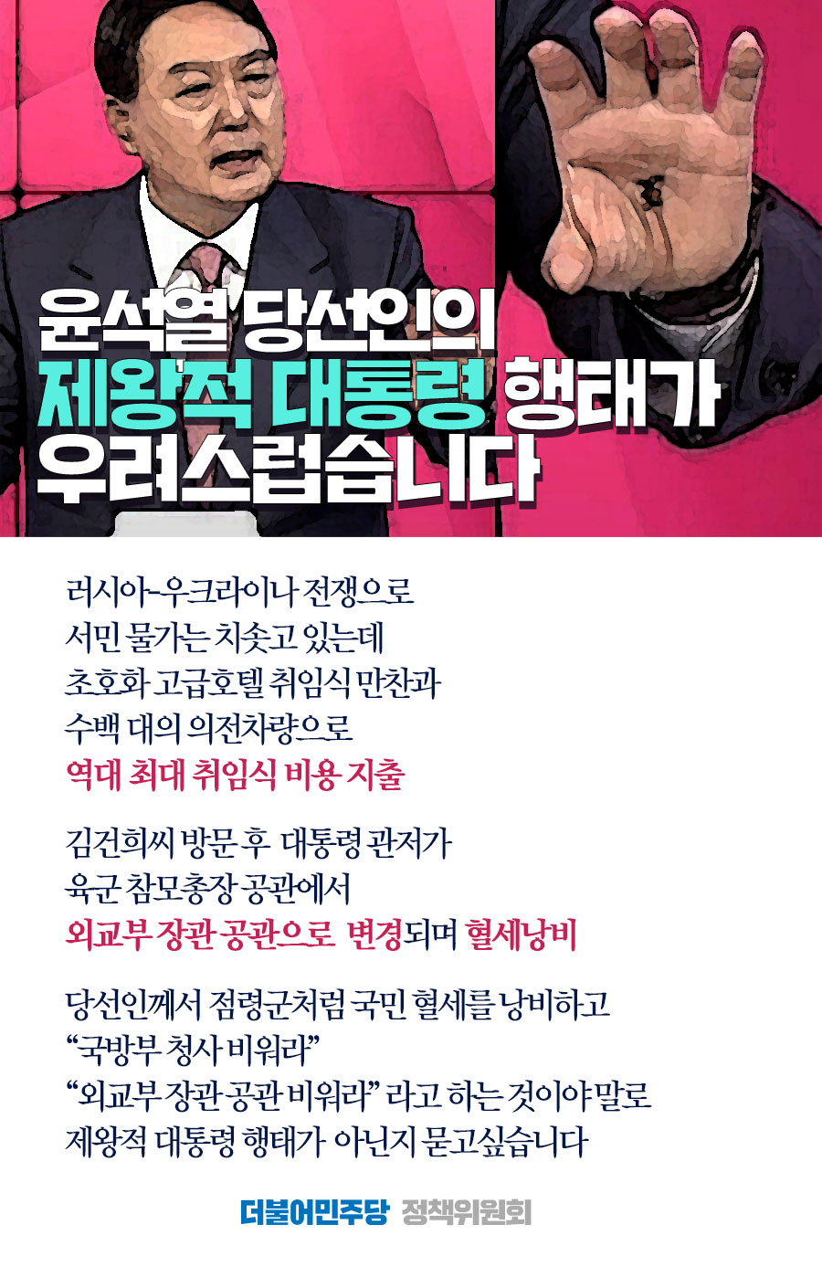 윤석열 당선인의 제왕적 대통령 행태가 우려스럽습니다
