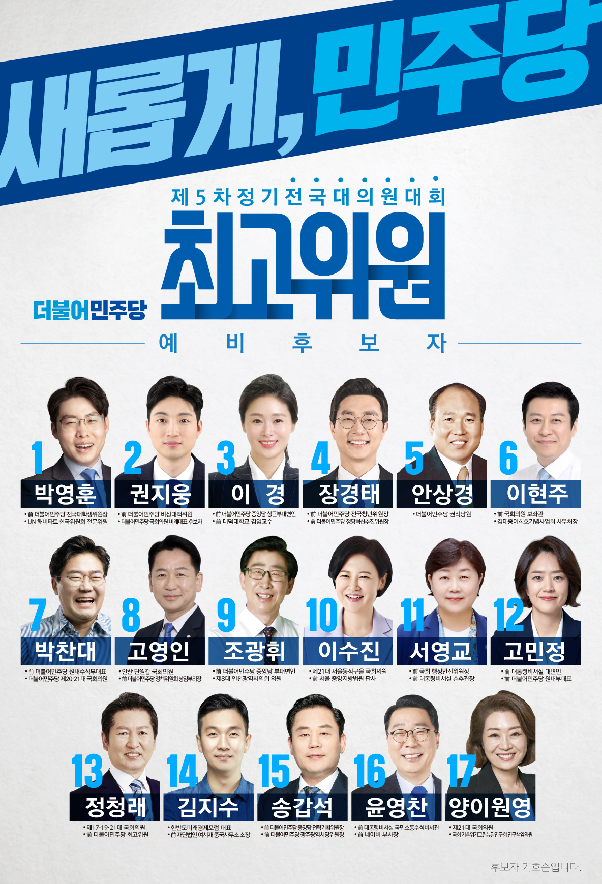 [새롭게, 민주당] 제5차 정기전국대의원대회 당대표/최고위원 예비후보자