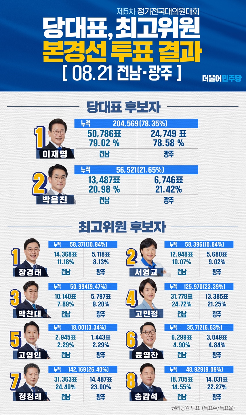 당대표, 최고위원 본경선 투표 결과 [전남, 광주]