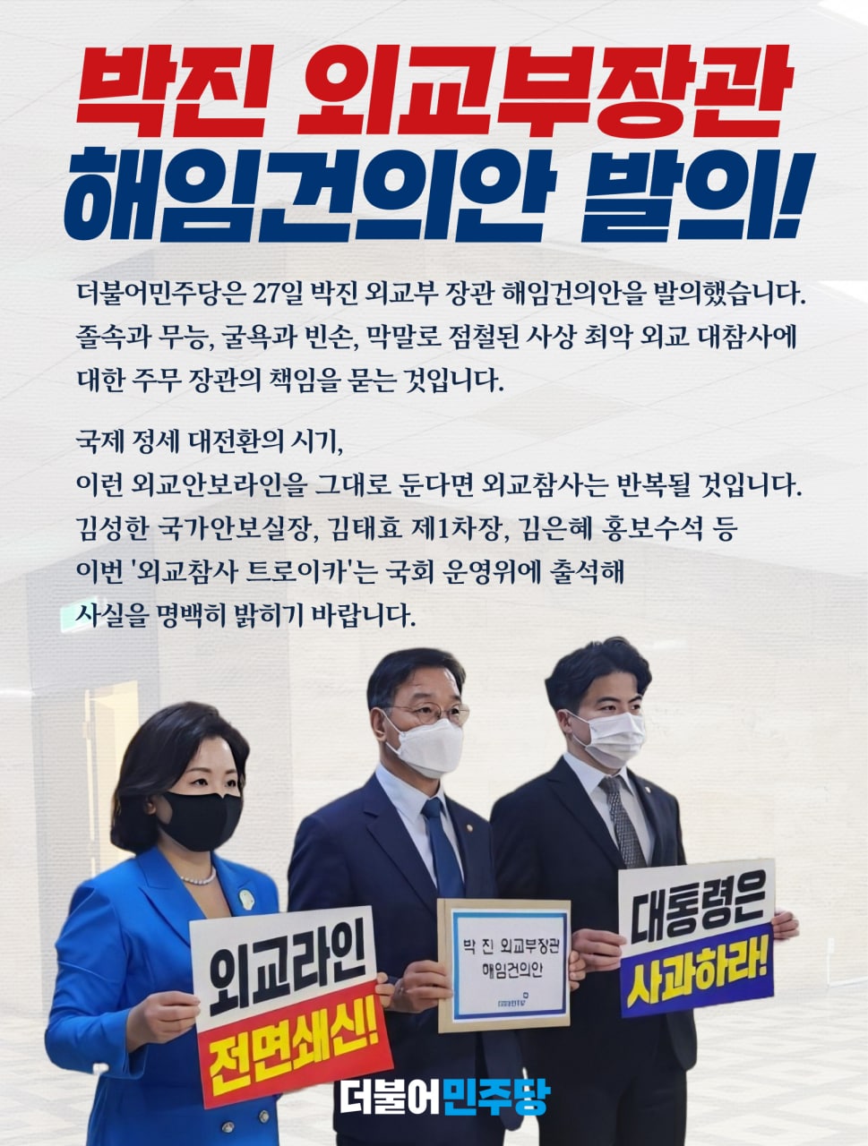 박진 외교부장관 해임건의안 발의!