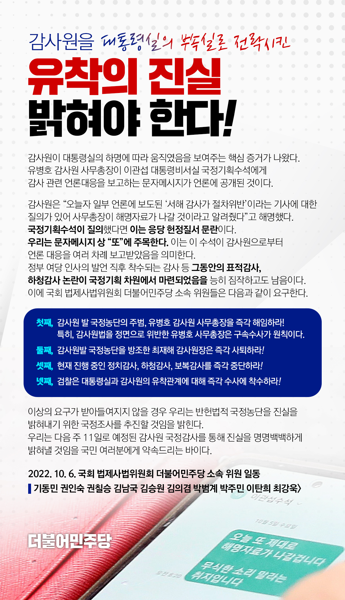 감사원을 대통령실의 부속실로 전락시킨 유착의 진실 밝혀야 한다!