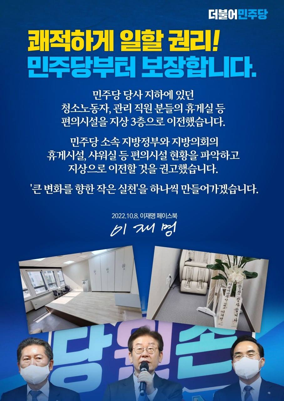 쾌적하게 일할 권리! 민주당부터 보장합니다.