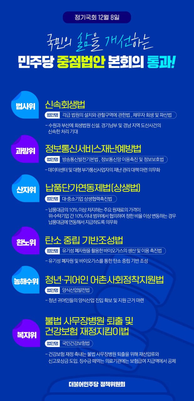국민의 삶을 개선하는 민주당 중점법안 본회의 통과!