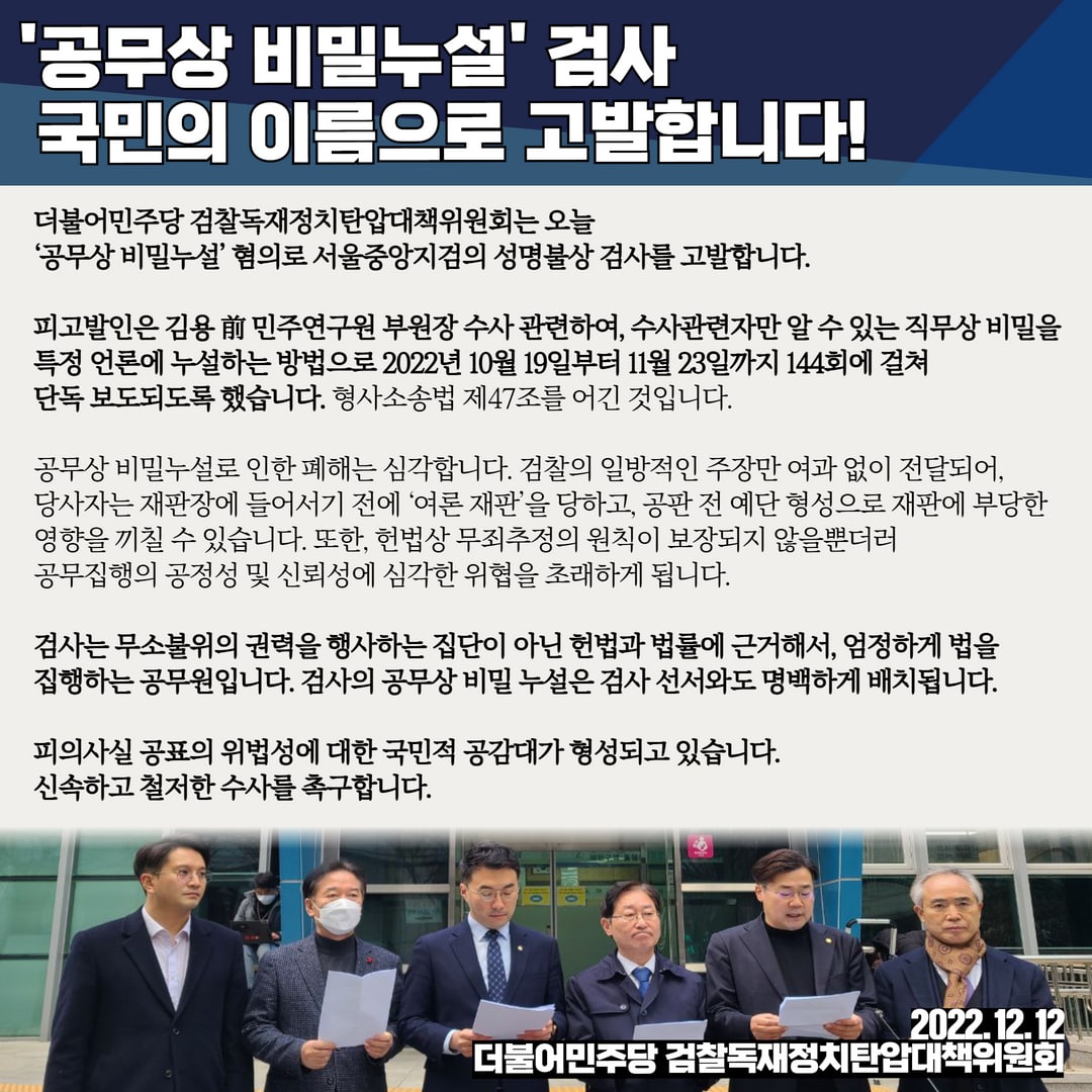 '공무상 비밀누설' 검사 국민의 이름으로 고발합니다!