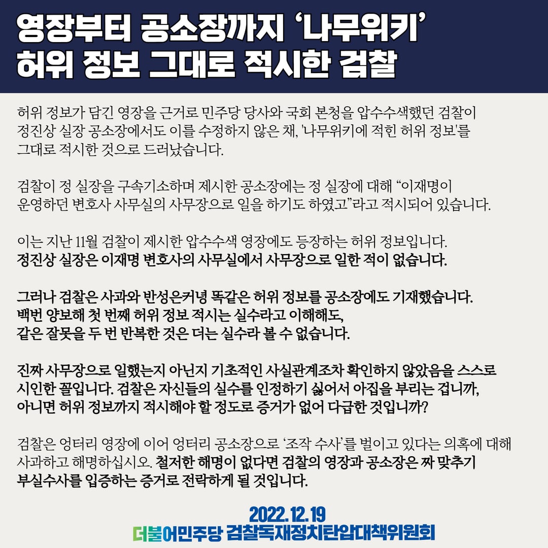 영장부터 공소장까지 '나무위키' 허위 정보 그대로 적시한 검찰