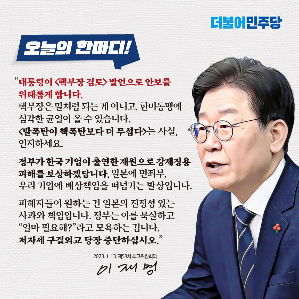 [이재명 당대표 2023 신년기자회견] 국민의 오늘을 지키고 나라의 내일을 바꾸겠습니다