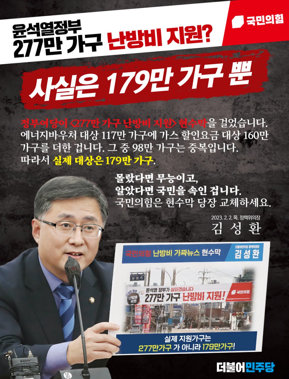 윤석열정부 277만 가구 난방비 지원? "사실은 179만 가구 뿐"