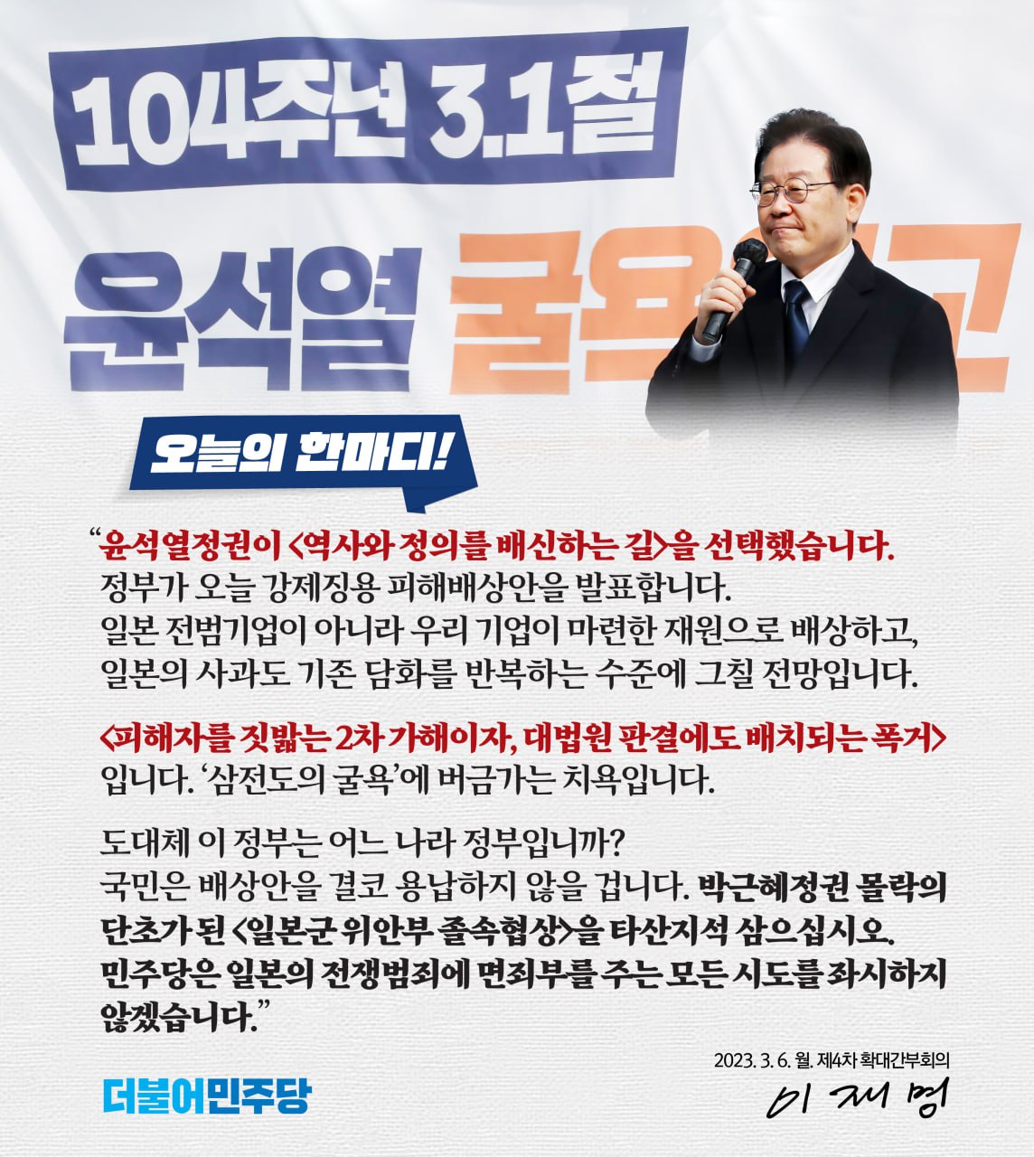 윤석열정권 치욕적 '강제징용 셀프배상' 이완용의 부활인가!