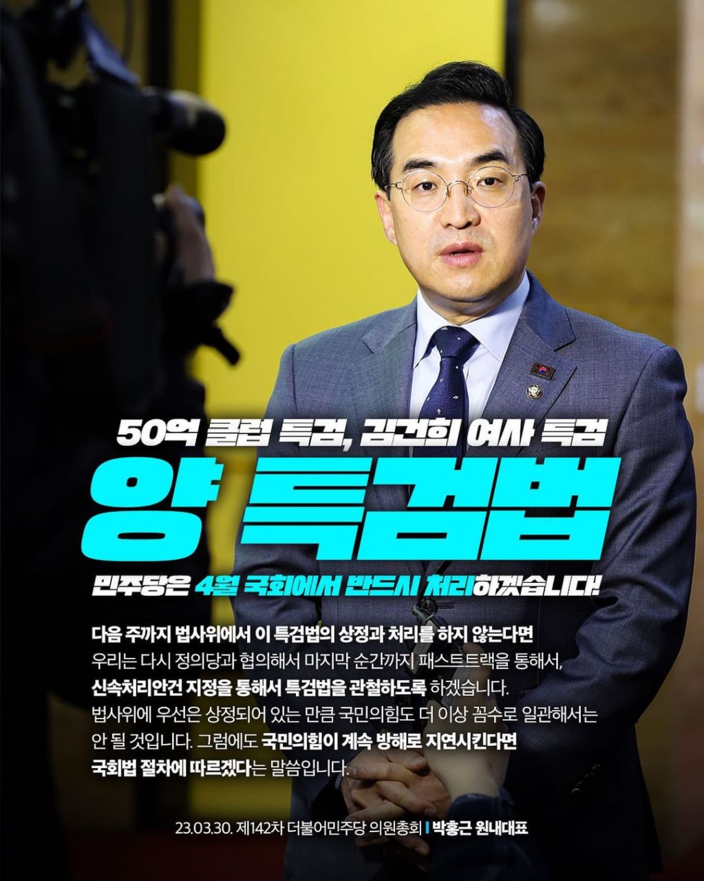 양 특검법, 민주당은 4월 국회에서 반드시 처리하겠습니다!