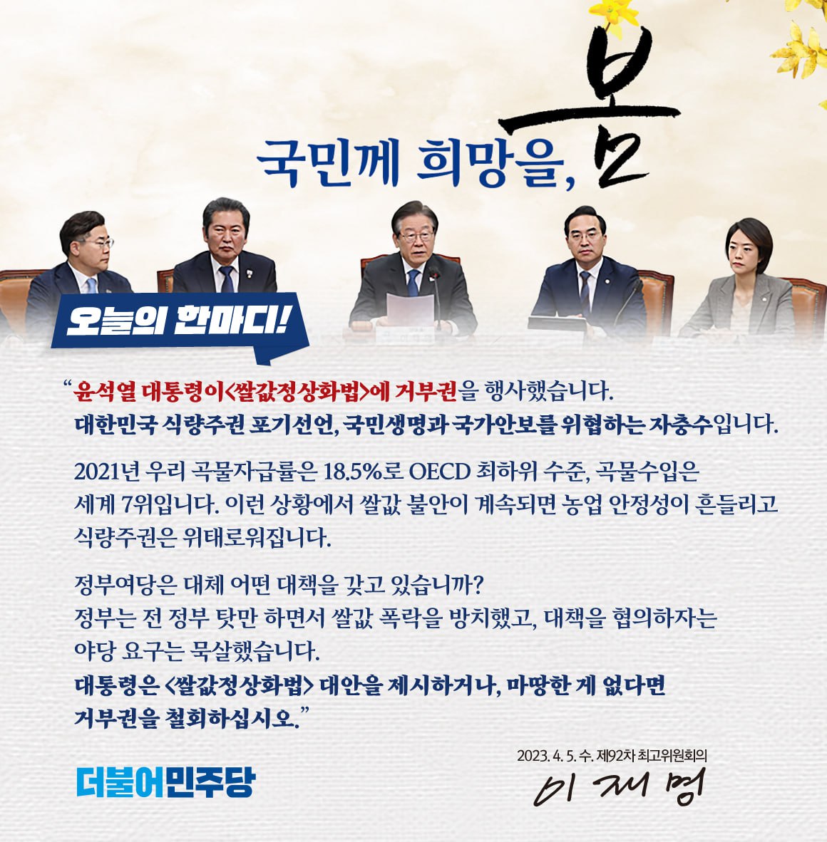 식량주권 포기 민생 발목잡기