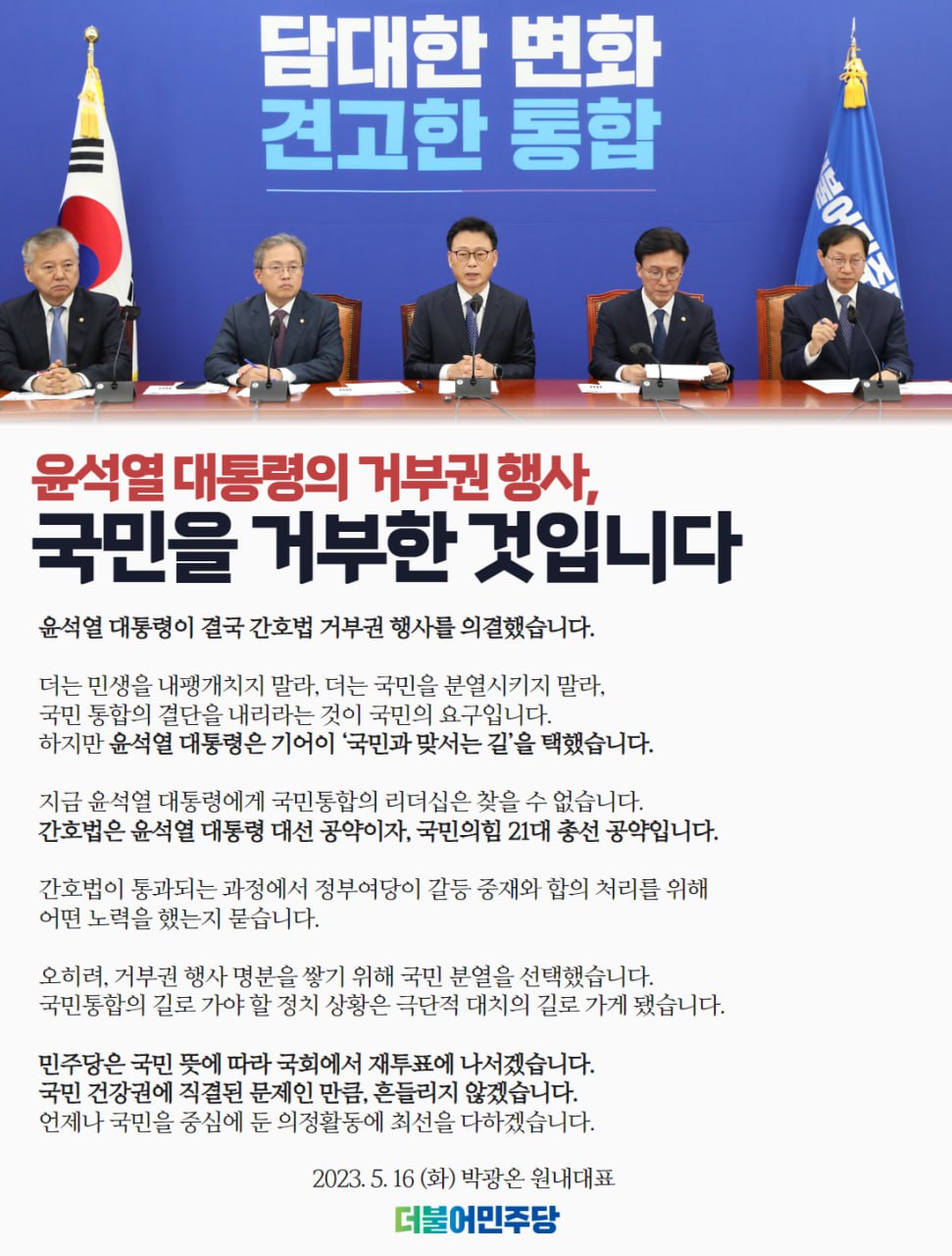 윤석열 대통령의 거부권 행사, 국민을 거부한 것입니다