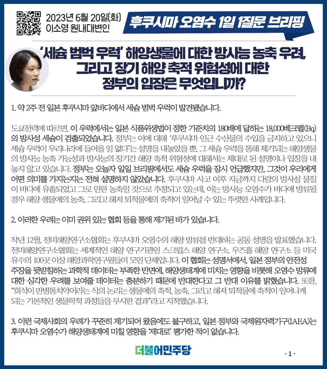 23.06.20 후쿠시마 오염수 1일1질문 브리핑