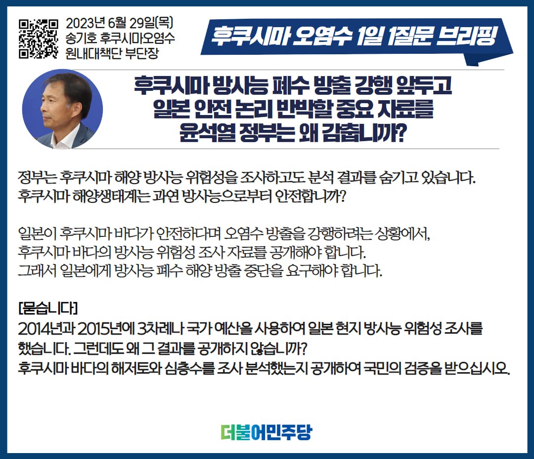 23.6.29 후쿠시마 오염수 1일 1질문 브리핑