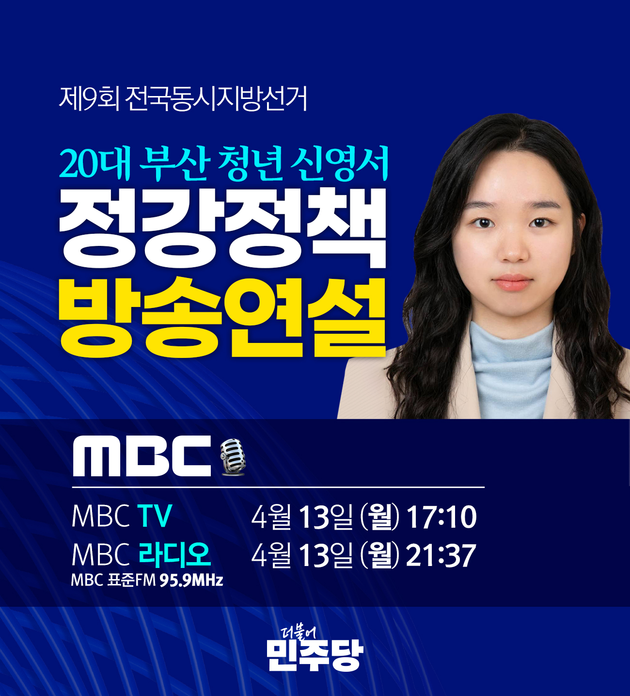 제9회 전국동시지방선거 20대 부산 청년 신영서 정강정책 방송연설