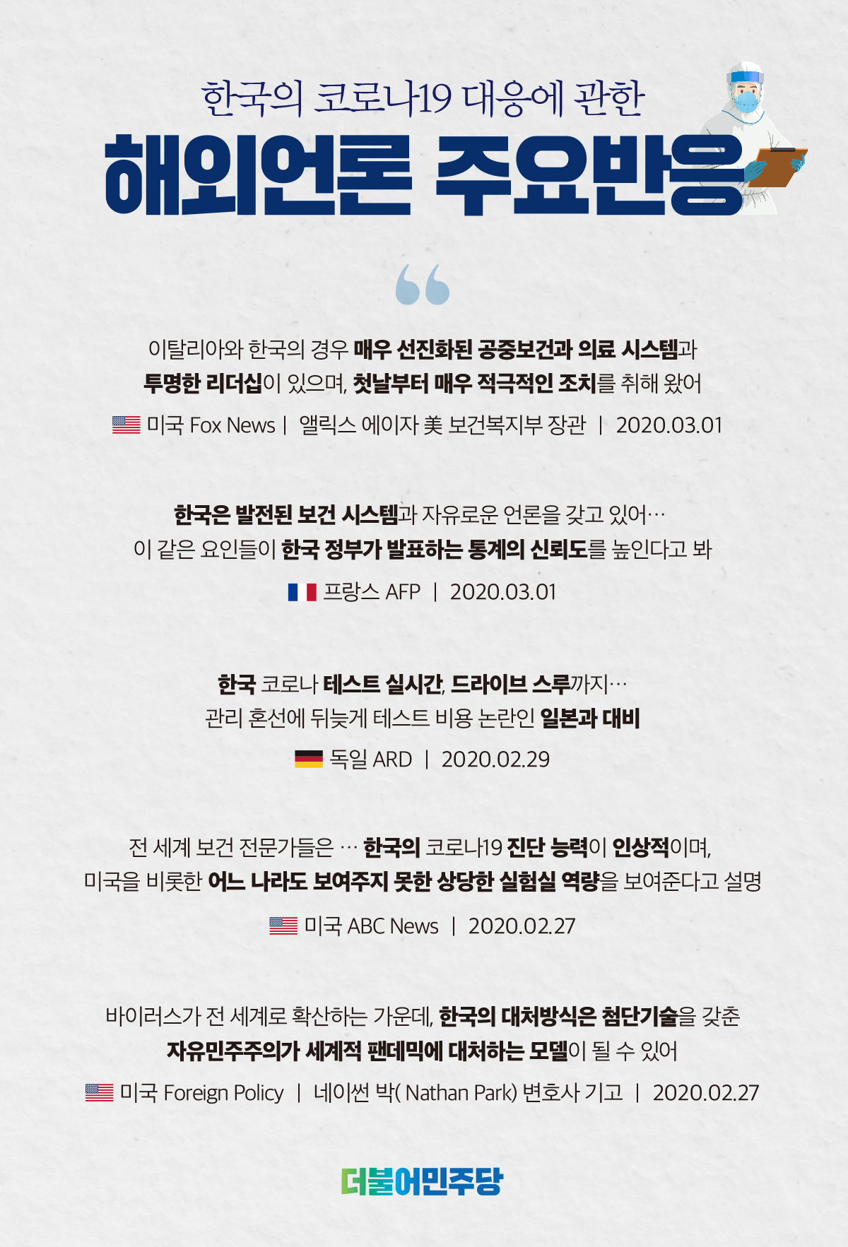 한국의 코로나19 대응에 관한 해외언론 주요반응