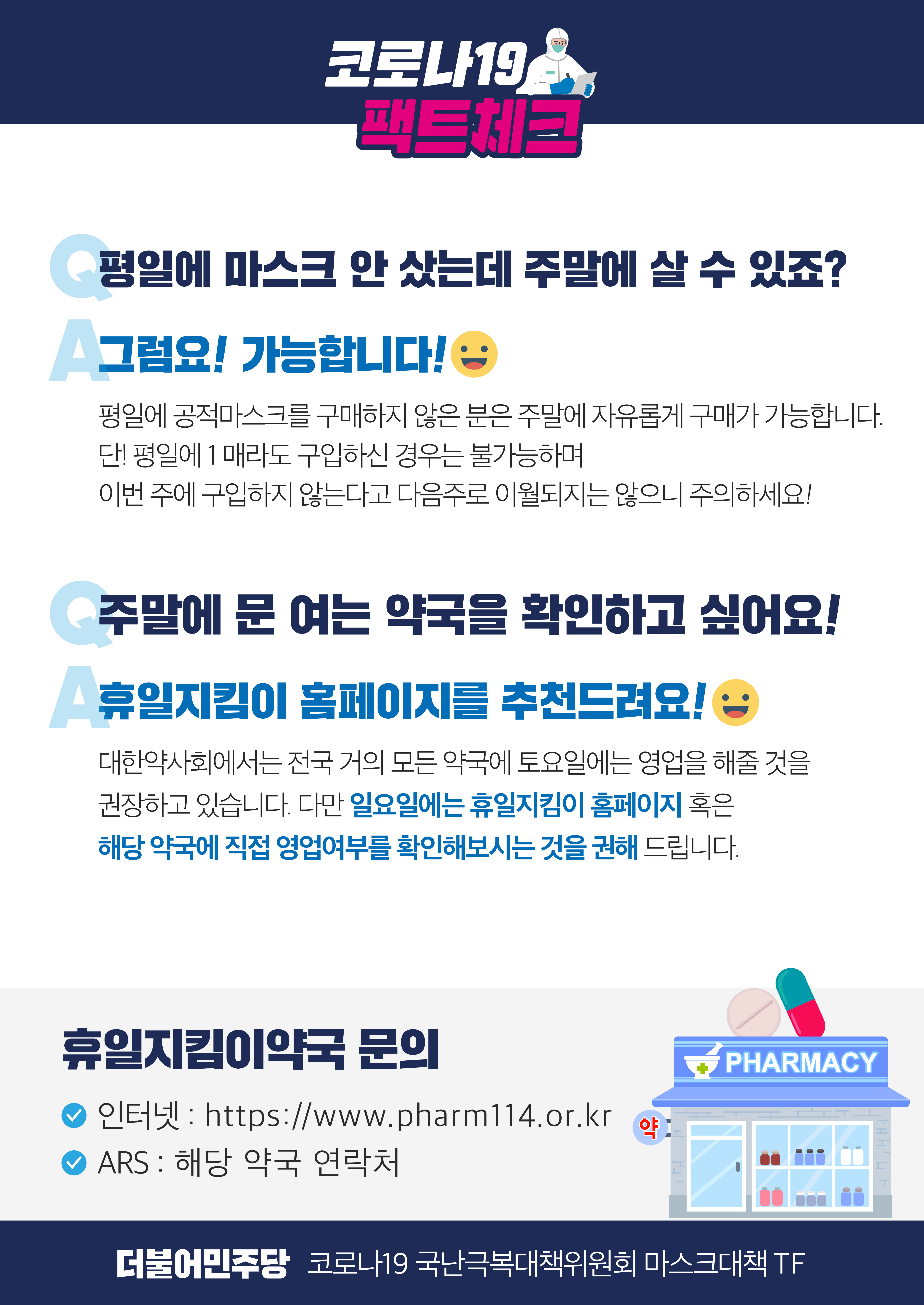 코로나19 팩트체크 1 - 주말 마스크 구매 가능?