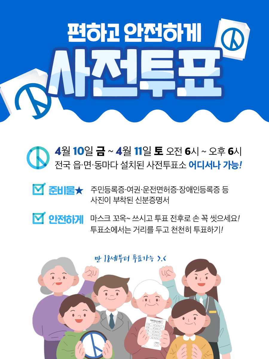 4월 10일(금) ~ 11일(토) 오전 6시 ~ 오후 6시까지 사전투표!
