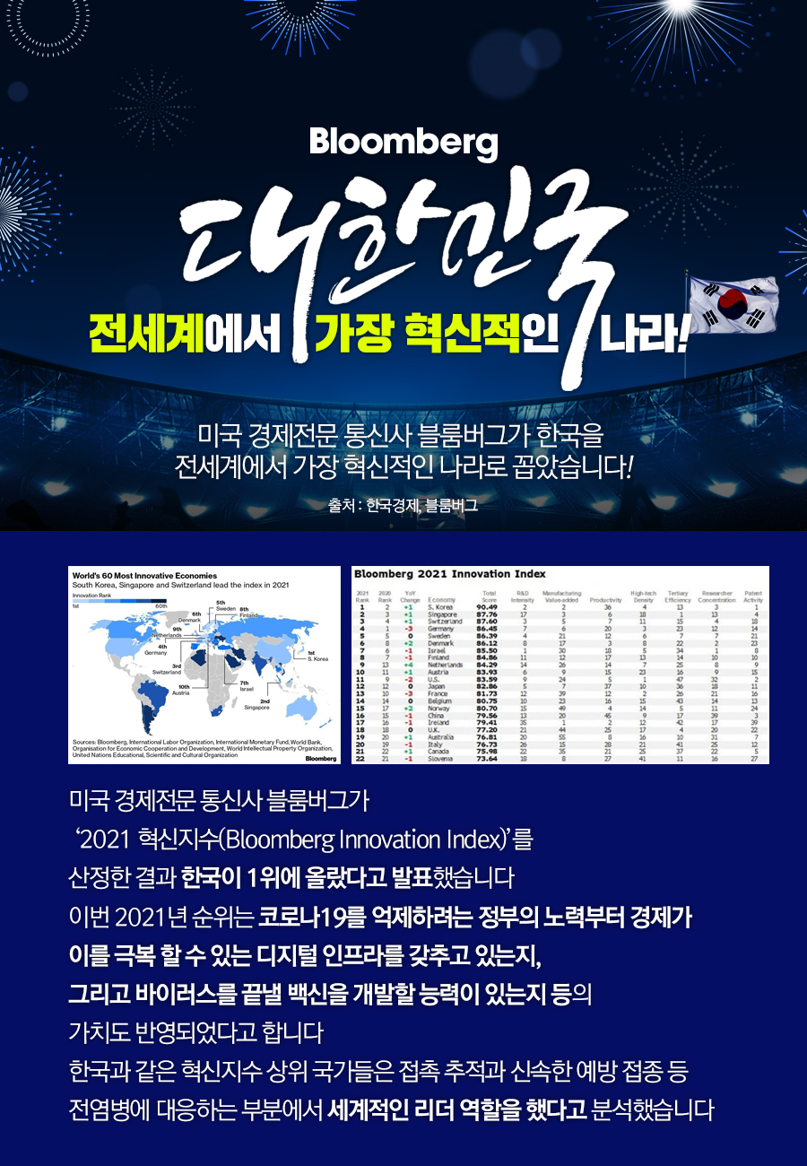 전세계에서 가장 혁신적인 나라! 대한민국