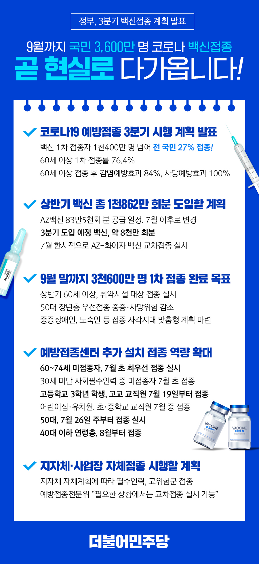 3분기 백신접종계획 발표! 전 국민 70% 접종 목표 끝까지 달성 하겠습니다!
