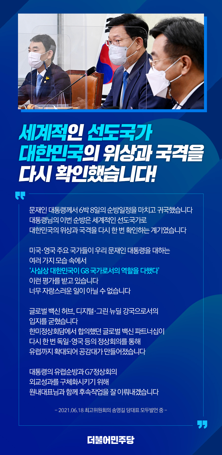 세계적인 선도국가 대한민국의 위상과 국격을 다시 확인했습니다!