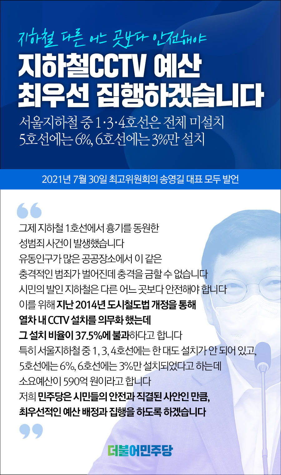지하철 CCTV 예산 최우선 집행하겠습니다