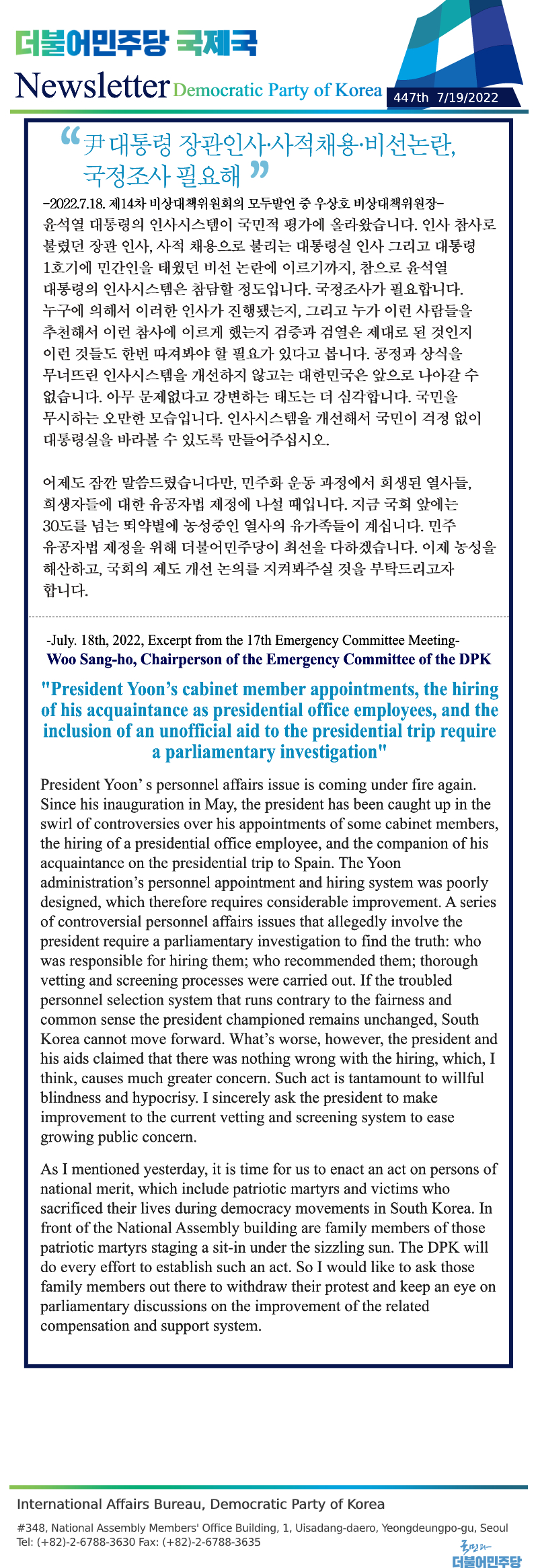 [446th Newsletter] Excerpt from the 14th Emergency Committee Meeting